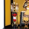 黒塗飾台と金紙表装の黒塗枠三曲屏風の構成