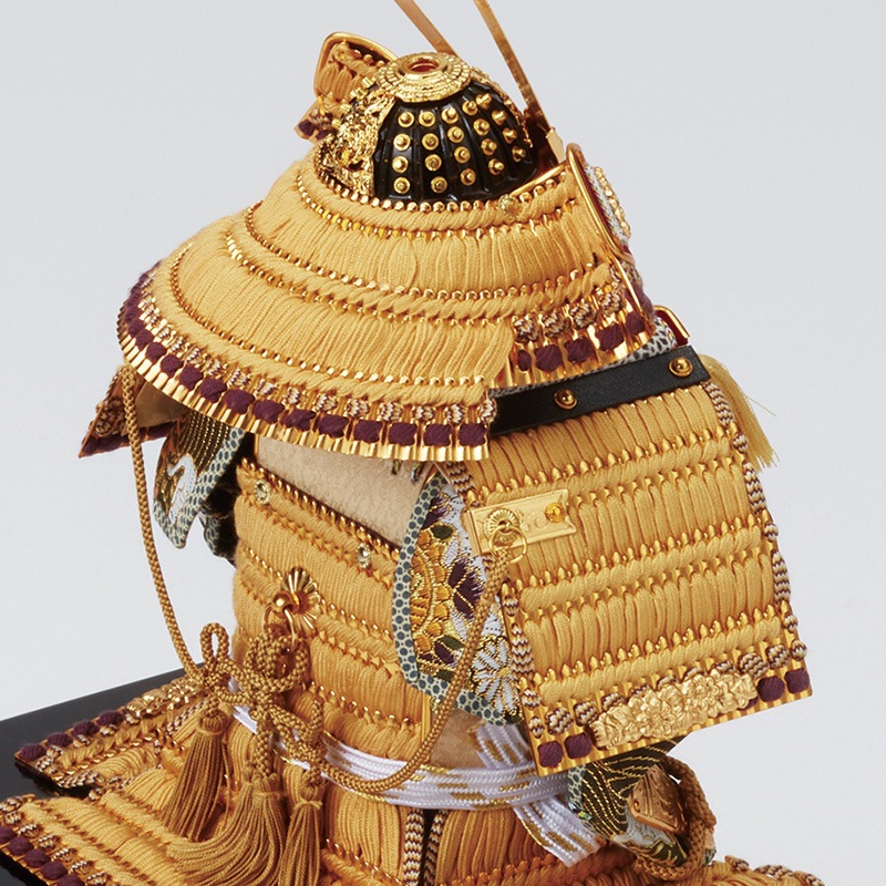 金色小札に赤糸が退色する様子を表現した柔らかい黄色の緋縅で仕上げています