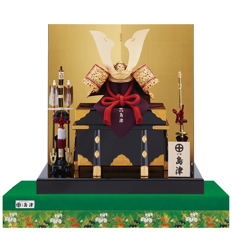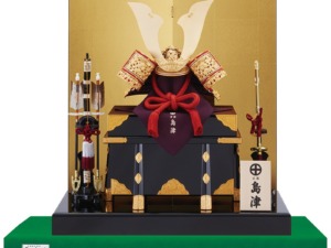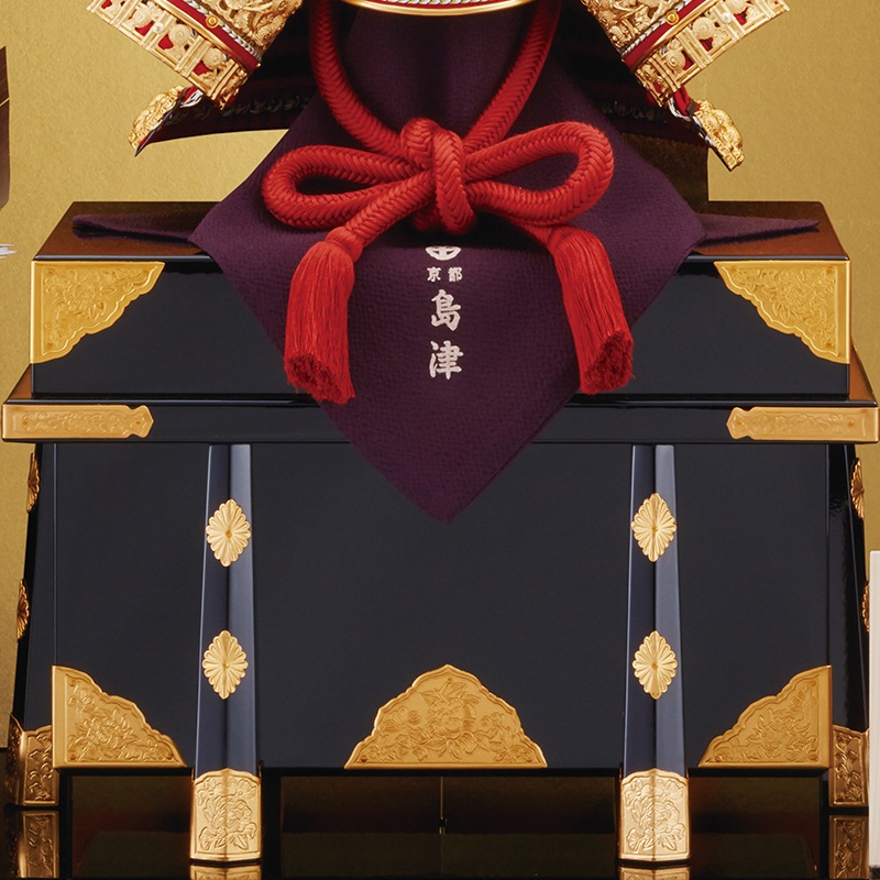 主役の兜は、溢れる活力と圧倒的な力強さ、魔除けの意味をもつ赤糸縅(あかいとおどし)
