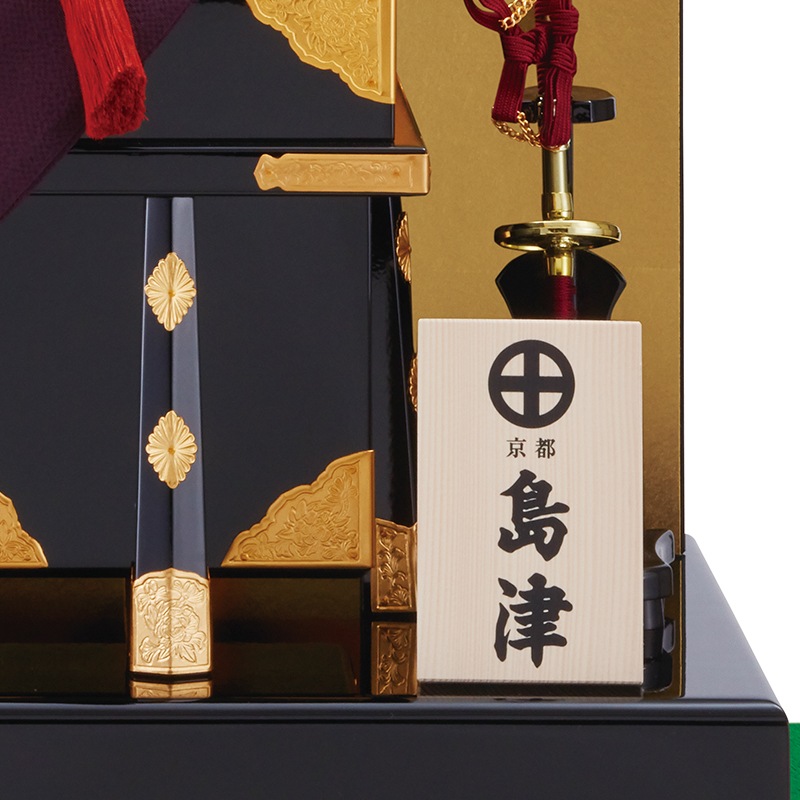 黒塗飾台と柔らかな光を放つ金屛風の組み合わせ