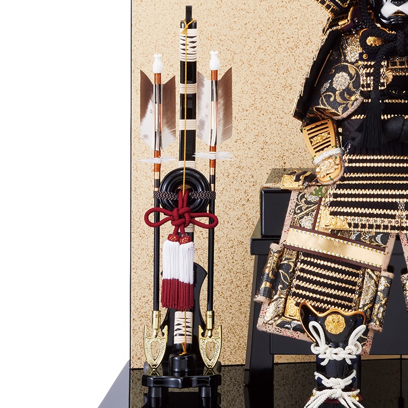 鎧の両側には弓と太刀を整え、晴れの儀式に相応しいお飾りです